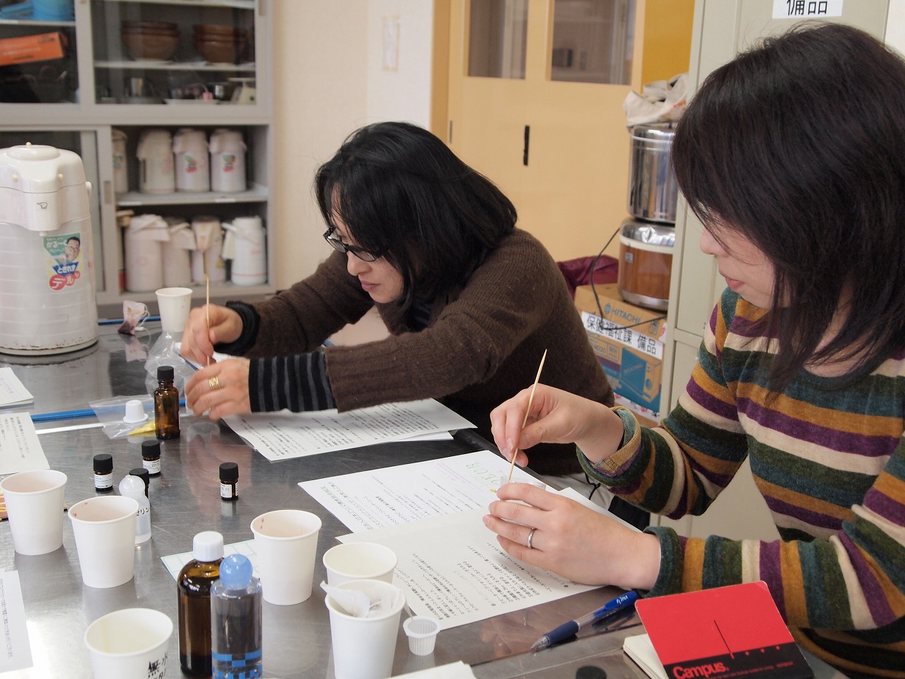 《 アロマテラピー教室の巻 》 前回に引き続き、講師は清野さん。 髪を切って、ますますaikoにそっくりな清野さん。 とっても穏やかで癒される雰囲気がまたアロマ教室にはぴったり。 でも、内なる野望はすごいんですよ ![]() 今回は、「スキンローションとクリーム作り」。 制作に入る前に、精油の効能をお勉強。 今回の受講者の皆さん、とっても真剣にメモを取っていて、清野さんも私もその熱心さに感動! ![]() 色々な精油の効能が分かったところでいよいよ香りのブレンド。 自分の好きな香りを選ぶのはもちろん、自分の肌に合ったものを選んでブレンドすることができます。 ほんの少しでも良い香り。 この分量がむずかしい・・・・ でも、余裕 ![]() ローションは、香りが決まれば、あとは材料を混ぜてビンに移せば完成です。 クリーム作りは、ミツロウを溶かす作業もあり、 溶けてからは時間との勝負!! 固まる前に、精油を入れて香りづけ。 こんな感じで、オリジナルのクリームの出来上がり。 これ、とてもしっとり、伸びのよいクリームなんです。 手足や顔にも使えます。 最後はみんなで完成品をもってポーズ。 今回の参加者さんたち、とっても明るくて和気あいあいと楽しい雰囲気でした。 参加者さんからの「こんなのやってみたら?」という声も頂き、私達もまた次への期待が膨らみました。 これからも、色々アイディア出しながら、アロマテラピー教室開催したいと思っています ![]() 《歩くスキーで遊び隊! の巻》 日曜日は歩くスキー ![]() 総勢13名の遊び隊です ![]() 雲の間から、うっすらと光が射す中スタートしました 場所は幌萌町の運動公園付近。 今年は例年より雪が少なく、草や笹が出ている場所もたくさんありました。 アイスバーンのところが多く、歩くのに苦労していた皆さんでしたが、 下りはスイスイ滑って行きます でも、気を抜くと何でもないところで、こういう事態になったりします ![]() 今回は、60代の方が多かったのですが、皆さんホントに元気いっぱい!! 何度転んでも、笑い声が絶えず「だんだん転ぶのもうまくなってきたわ!!」 なんて言いながら楽しんでいらっしゃいました ![]() 通称 『タコの木』 いくつになっても、外での遊びを心から楽しむことができる素敵なお姉さま達と、 とても楽しい時間を過ごさせて頂きました。 私もこんな風に健康に明るく年を重ねていきたいなと思いました。 どちらの事業も、皆さんホントに明るくて元気が良くて、楽しい雰囲気を創り上げて下さいました。 きっと羅臼にはもっともっと元気な人たちが潜んでいるんだろうなぁと思うと、ワクワクしてきました。 間もなく23年度の会員さん募集の時期になりますが、まだまだ『らいず』を知らない人も多いはず。 どんどんPRして、新しい会員層を増やしていければ、もっと楽しい事業ができるはず・・・ こうやって、参加者の皆さんからパワーを頂いて、これからもますます頑張っていきたいと思います ![]() PR