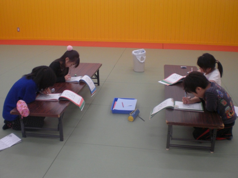 開始当初から通い続けてくれている4人。 みんな、運動するのが楽しい!と言って、毎日笑顔を見せてくれます。 先週の金曜日には、第Ⅲ期開始後、初めて4人が揃いました。 おしゃべりもせず、黙々とドリルに取り組んでいます。 私は、出来た子どものマルつけをするくらい・・・ 「ここには、絶対に4が入るの。だってね・・・」 と、解き方を説明し合う姿も見られたりします。 私は、それをニコニコ見ています。 『運動タイム』に入ると、元気いっぱいに体を動かします。 みんな特に、ボールを使ったプログラムが大好きです。 投げる高さや、力加減を自分で考えながら、少しずつ色んな事ができるようになってきています。 出来なかった事ができるようになると、みんな手を叩いて喜びます。 何とも微笑ましい光景です。 これ、実は1年生の男の子が考えてくれたプログラム。 後ろにいる人が、動かずにキャッチできるように後ろ向きでボールを投げるというもの。 ちょうど良い力加減で投げる難しさに、みんな一生懸命チャレンジしていました。 時間が経つにつれて、「べっちぃ、こんなのどう?」と、子どもたちからプログラムを提案される事も増えてきました。 危険がないか、効果的なものになるかを考えて、可能な限り子どもたちの発想を活かしていこうと思っています。