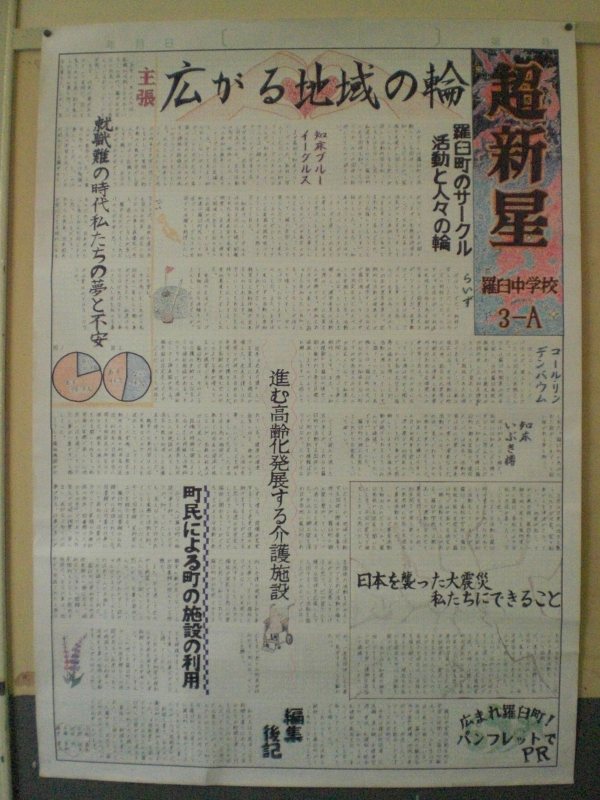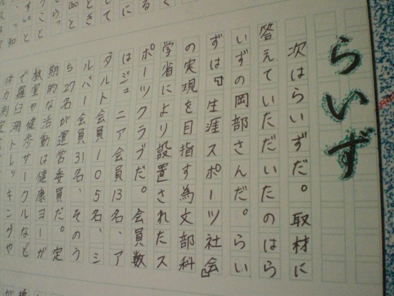 まとめてご報告。 報告① 『体力測定会』 今年は、4名とちょっと少なめでしたが、体力自慢・健康管理意識の高い皆さんが集まって下さいました。 握力・長座体前屈・反復横とび・上体起こし・立ち幅跳び・20mシャトルランの6種目を測定します。 昨年も参加して下さった方は、昨年の記録を見ながら、その数値を目標に頑張っていらっしゃいました。 時には、頑張りすぎてこんな場面も・・・ 仲良く参加のOご夫妻。 御主人は駅伝でも大活躍。 奥様は出産後久しぶりの体力測定のようでしたが、なかなかの実力の持ち主。 ご夫婦揃ってお見事でした!! 測定後、体力自慢の皆様と雑談中、運営委員からのちょっとした提案に「それいいね!やるなら協力するよ!」とOさん。 今はまだ詳細を明かすことはできませんが、これがもし実現したら、らいずの新しい目玉企画となるかも知れません。 是非是非、実現したいものです!! 報告②「バドミントン月例大会」 2回目となった月例大会。今回は10名の参加。 前回の反省を活かし、少しはスムーズに進行できたかな・・・? 今回はバドミントン大好き!定期活動常連さんのKくん。 全勝で圧勝でした。 ちなみに、翌日行なわれた「町民バドミントン大会」でも、K君は優勝をさらっていったそうで・・・ おめでとうございます!! お疲れさまでした。 報告③ 『英嶺山トレッキングツアー』 前日までの予報は雨。 それでも当日の朝は曇り空で、午前中は何とかもちそうだったので、開始時間を1時間早め実施しました。 わずかに紅葉が見られる入口。 ちなみに、今年も羅臼山岳会の皆さんが、このトレッキングを前に笹刈をし、登山道を整備して下さいました。 ありがとうございます。 入口からしばらくは急な斜面が続きます。 羅臼中学校を見下ろすポイント。 天気が良ければ海や国後島も見えますが、昨日はあいにくのお天気・・・ でも、「ガスに包まれた景色もなかなか幻想的でいいね」と参加者の皆さんは喜んで下さいました。 落ち葉の道を歩いたり・・・ 「四ッ倉沼」では、可愛らしいカモの姿を見る事が出来たりと、 お天気が悪い中でも、いろんな楽しみがありました。 頂上で記念撮影。 下山途中、参加者のお一人から「らいずさんのおかげで、今年は色んなところに行くことができました。来年は少しずつ妻も連れだして楽しみたいと思います。」と、嬉しいお言葉を頂きました。 こうやって、少しずつ楽しみの輪が広がっていくんですよね・・・ ここ最近、バタバタと慌ただしく過ごし、大切な事を忘れかけてたなぁ・・・と振り返った瞬間でした。 Tさん、ありがとうございます。 最後は少し雨に当たりもしましたが、無事にトレッキングを終える事が出来ました。 今回は参加賞?として、講師のまんさんから、なんと!一人一つずつ大きなキャベツのプレゼント。 思いがけない品物に、皆さん大喜びでした。 次回のイベントは11月3日(祝・木)の「秋のお散歩会」 英嶺山よりも気軽に楽しめるコースです。 今年のアウトドアイベントはこれが最後。冬まではありませんので、皆さん是非参加して下さいね。 報告④ 『らいず、新聞に載る』 こちら、羅臼中学校文化祭で展示されていた壁新聞。 3年生の皆さんから取材を受けました。 「広がる地域の輪」と題して、羅臼町の各サークルや団体を取り上げた中のひとつに「らいず」の記事もありました。 中学生が「らいず」を知ってくれているということがまず嬉しくて、 しかも文章を読むと、私が回答した内容を上手にまとめてくれていて、 読んでますます嬉しくなりました。 この記事を書いてくれた中学生が、成人してこの街で活躍する頃にも、しっかりと地域に根差した団体であり続けられるよう、これからも頑張りたいと思います。 羅臼中学校3年生壁新聞担当の皆さん、ありがとうございました。
