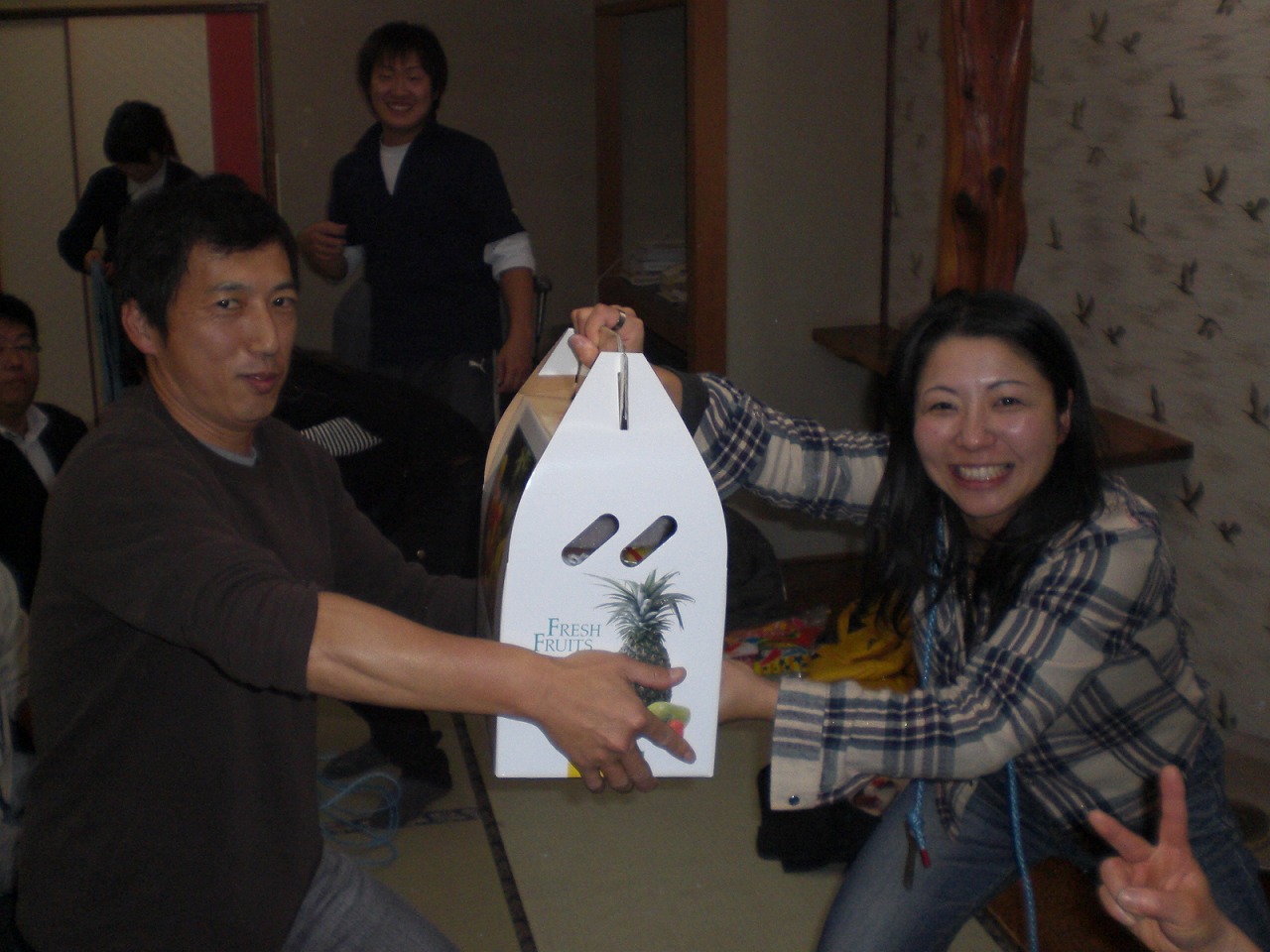 ![]() 12月ですからね。 でも、忘年会の前にはしっかり会議もやりましたよ 今回は、協賛店「ホテル峰の湯」さんの会場をお借りして、宴会とは別に会議用のお席まで用意して頂きました。 忘年会が控えているとは言え、内容はほぼいつも通り。 実施した事業の反省と、来月以降の事業についてしっかり話し合いました。 いつもたくさんの方々に出席して頂き、たくさんのご意見・アイディアをいただく事で、らいずの事業は運営されています。 40分位過ぎたころから、「ジュージュー」と肉が焼けるような音やら、いい香りが立ち始めて、何だかそわそわ・・・ ということで、1時間弱でしっかりと会議を終えて、いよいよ忘年会突入です ![]() 協賛店「ホテル峰の湯」さんには、たくさんのお料理を提供して頂きました。ありがとうございます。 美味しいお料理にお酒。楽しい時間を過ごしました。 後半戦。余興の時間は、この1年を振り返る「らいずダービー」やりました ![]() 宴会部長のA君と一緒に考えた内容です。 予想以上の高得点になるという反省もありましたが、まずまずの盛り上がりで良かった良かった ![]() そして、最後は羅臼名物?の「ほうびき」です。 でも、こういうの私まず当たらないんですよねぇ・・・ ところが・・・ 当たったぁーーーーーーーーーーーーーーー ![]() ![]() ![]() ![]() ![]() しかも、一番最初の賞品ゲット!! いつもフルーツを提供してくれるMさんのフルーツ盛り合わせ!! でも実は私・・・ 果物アレルギー ![]() 果物は大好きなんですよ。 でも、白樺花粉のアレルギーとやらで、そのアレルギーがあるとバラ科の果物がダメらしく、大好きなさくらんぼも、大好きなりんごも、大好きな桃も、食べると喉がくっついたみたいになって、かゆくて・・・ ![]() そしたら、隣に座っていたフルーツ大好きMさんが、次のワインを見事に引当てて・・・・ でもって、お酒大好きな私のフルーツ盛り合わせと、フルーツ大好きMさんのワインはチェンジ成立となり・・・・ こうなりました ![]() 年末年始、楽しませて頂きます ![]() この後も、2次会、3次会と続き・・・ 夜は更けていきました。 やる時はしっかりやる、遊ぶ時はしっかり遊ぶ。 そんな皆さんとの楽しい夜でした。 いつも、本当に心強い運営委員さんたち。 この4月から仲間入りさせて頂いた私にもいつも温かく接して下さり、心から嬉しく思っています。 羅臼の人たちに喜んでもらいたい、みんなが笑顔で「楽しかったね」と言ってくれる事が嬉しい、そんな思いで集まったらいずの運営委員さんたち。 1人1人の想いが、それぞれの事業を通じて参加者である町民の皆さんに伝わっているんじゃないかなぁと感じます。 また来年も、素敵な運営委員さんたちと色々な事業を通して、少しでも羅臼の街を明るく元気にしていけたらなぁと思っています。