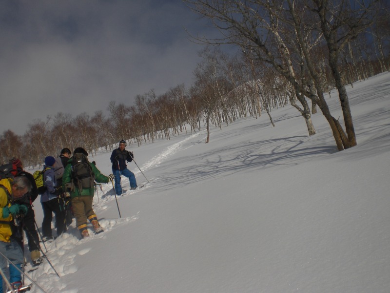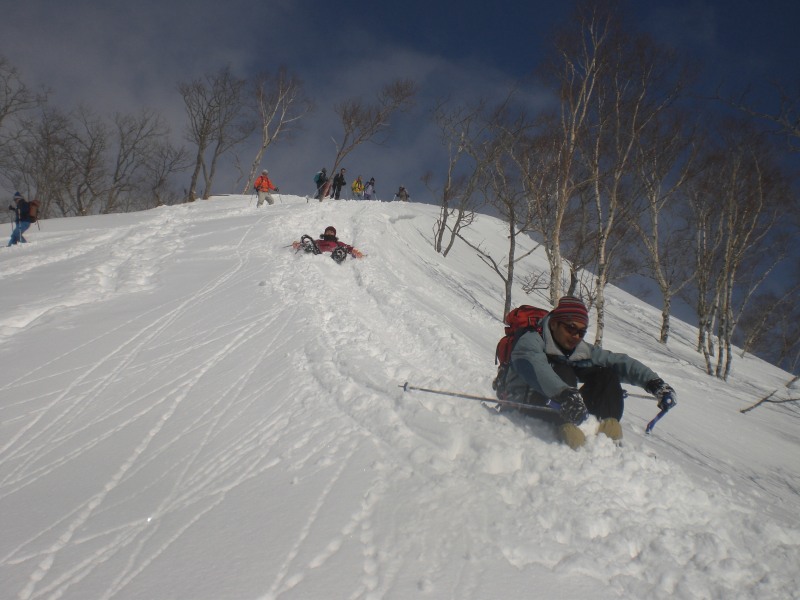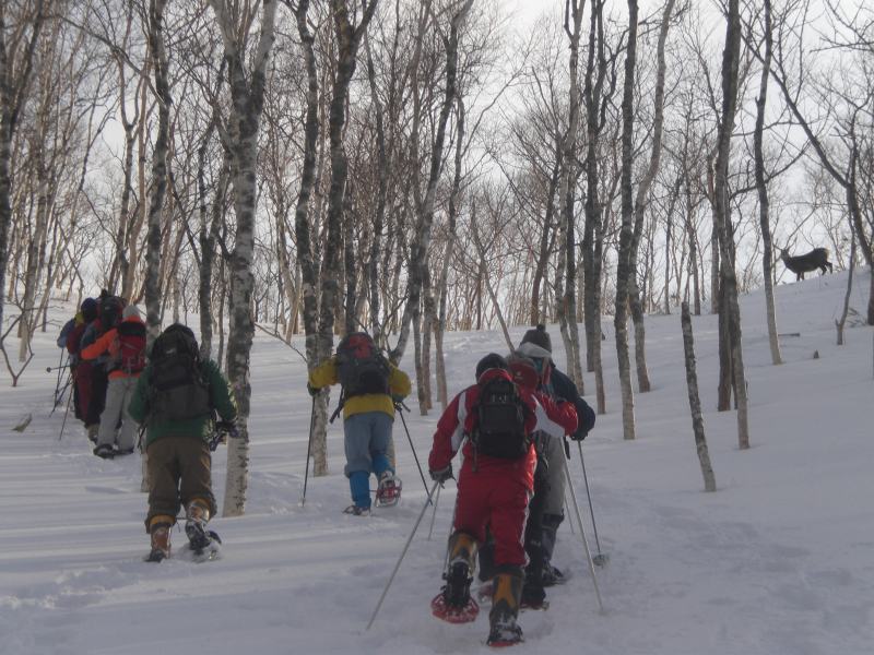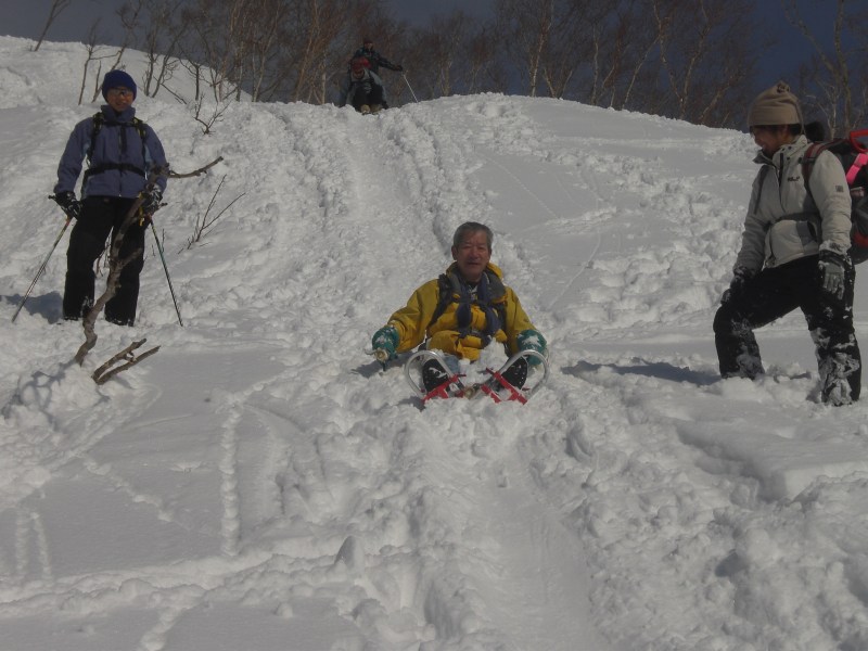 最高のお天気の中で、英嶺山のスノーシュートレッキングを行いました。 初めは少し急斜面。 右上に写っているのは、雄シカ 森の住人が早速出迎えてくれました。 途中、2週間前に登ったスキー場の斜面が見えました。 「この前はあそこに登ったのよねぇ・・・」なんて話をしながら・・・ 登り始めて1時間ほどで、『熊見台』到着。 こちら、好奇心旺盛Aちゃん。 「登れるかなぁ・・・」って言っていた彼女も、まんさんのペースにしっかりついて行っていました。 木の穴に、フクロウ? 「ボーッ ボッ」って鳴いていたけど・・・ ![]() こんな遊びができるのも、雪が降り積もった今だからこそ。 夏場なら、とてもこの高さには届きません。 右上に、うっすらと頂上が! もう少し! だけど、ここからが大変・・・ 詳しくは、掲示板のはっちの書き込みをご覧ください ![]() 頂上からは、びっしりと流氷に埋め尽くされた海と国後島。 こんなにお天気が良くなるなんて、かなりラッキーです。 参加者の皆さんの日頃の行いの良さですね。 帰りはもちろんこれ!! 勢いが良すぎてこんな風になっちゃう方も・・・ でも、せっかくの雪山だから、やっぱりここまで真剣に楽しまなくちゃ! ![]() 気づけば、今年度ラストのアウトドア事業となった今回のスノーシュートレッキング。 最高のお天気で最高に楽しく締めくくる事ができました。 参加頂いた皆さん、ありがとうございました。 また是非ご参加くださいね。 |