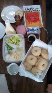 しかし私は研修会のため参加できず・・・ それを知った運営委員のMひーさんとM子さんは、 「午前中バドミントンを楽しんだ後、育館でお昼食べてそのまままっすぐ行くわー」と快く引き受けて下さいました。 ありがたい!! ![]() お昼、バドミントンを終えた二人が事務所へ。 ランチタイムに広げられたのは・・・ Mひーさん手作りのベーグルサンドセットと、M子さんからスモークサーモン ![]() これには、超感激!! 前にも頂いた事があるのですが、Mひーさんのベーグルは絶品!! これに、野菜やゆで卵、ハム、スモークサーモンを好きなだけ挟んで食べるシステムとなっておりまして、体育館職員一同、大喜び!! ![]() 「これ食べて、べっちも研修会頑張って!」って・・・ 嬉しすぎて泣いちゃいます。 ホントに素敵な人たちに囲まれて幸せだと、心から思います。 いつもありがとうございます ![]()