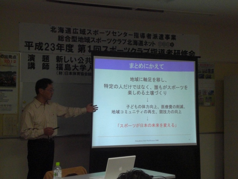 先週末は、全国スポーツクラブ会議が開催されました。 総合型地域スポーツクラブの第一人者である、福島大学教授・黒須 充先生のお話を聞かせていただくことができました。 やさしい語り口で、様々なクラブの実態・課題を教えて下さいました。 その後は、北海道ネットの役員や参加者が集まっての懇親会。 ここでは、ざっくばらんにお互いのクラブの情報交換をすることができ、とても楽しく有意義な時間を過ごすことができました。 15日(土)、第5回全国スポーツクラブ会議の初日です。 パネルディスカッションの他、「スクールウォーズ」のモデルとなった山口良治さんの熱い講演を聞くことができました。 夜は「情報交換会」 全国各地から寄せられた特産品もずらりと並びました。 私は、ここのブースで皆さんにお酌する係に当たっていたのですが、 各地のお酒を見る(飲む?)ことも出来ましたし、何よりたくさんの皆さんがここに来るわけですから、お酌しながら全国各地のクラブの方々とお話しすることができ、ものすごく楽しかったです!! (焼き場・運搬担当の皆さん、ごめんなさいね・・・) 情報交換会では抽選会があり、らいずからも「らいずセット」なるものを景品として出させて頂きました。 中身は、協賛店「昆布番屋・斉藤」の『花折昆布』、同じく協賛店「のりとも朝倉商店」の『鮭節』、そして羅臼の海産物を取り扱う「海鮮工房」の商品たち・・・ 是非、羅臼の味を知っていただきたいと思い作った、らいずオリジナルセットです。 ちなみにこちら、長野県と道内中川町の方が見事ゲットされました。 喜んでくれたかな・・・ 2日目は、分科会でした。 私は「クラブをつぶさないための処方箋(財源確保と自立、指定管理の是非)」というテーマのグループでした。 記録をとりながら、各地の現状や様々なアイディア・情報を得ることができ、とても有意義な時間でした。 この2日間、全国の方たちに是非羅臼・らいずのことも知っていただきたいと、 『羅臼・らいずブース』を設けさせて頂きました。 ブースでは私たちの活動紹介はもちろん、協賛店の昆布・塩サイダー等の販売も行ないました。 実行委員の役割を果たしながらだったので、充分な接客ができたか不安ですが、多くの方が足を運んで下さり、声をかけて下さいました。 ありがたいことに、商品はほぼ完売! 売上の一部は、東日本大震災の復興支援のため、寄付させて頂きます。 ブースに足を運んで下さった皆さん、お買い上げいただいた皆さん、本当にありがとうございました。 今年で5回目の全国スポーツクラブ会議。 実は、初めての参加でした。 「総合型地域スポーツクラブって何?」と、地元でもまだまだ認知度が低いクラブですが、全国各地にこんなにたくさんの仲間がいるということを肌で感じることができ、本当に嬉しかった。 そして、この会議を通じてたくさんの人と出会えたことも大きな財産となりました。 「宮崎県の半九レインボースポーツクラブ」の方たちとは、会議終了後も繋がることができました。お土産まで頂いちゃって・・・ありがとうございます。 そしてそして、この3日間を通じて一番うれしかったこと。 チーム羅臼の結束、絆の深さを改めて感じたということ。 会場に行ったスタッフはもちろん、羅臼で各教室・活動をいつも通り行なえるよう担当してくれたスタッフ、これまでの活動に汗を流してくれたスタッフ、誰一人欠けても、今の『らいず』はないし、これからの『らいず』もやっていけないのだと、改めて感じました。 羅臼の人のあったかさ 私が羅臼を好きな一番の理由はここにあるんです たくさんパワーをもらった3日間。 本当にありがとうございました。 また、一生懸命頑張ります!!