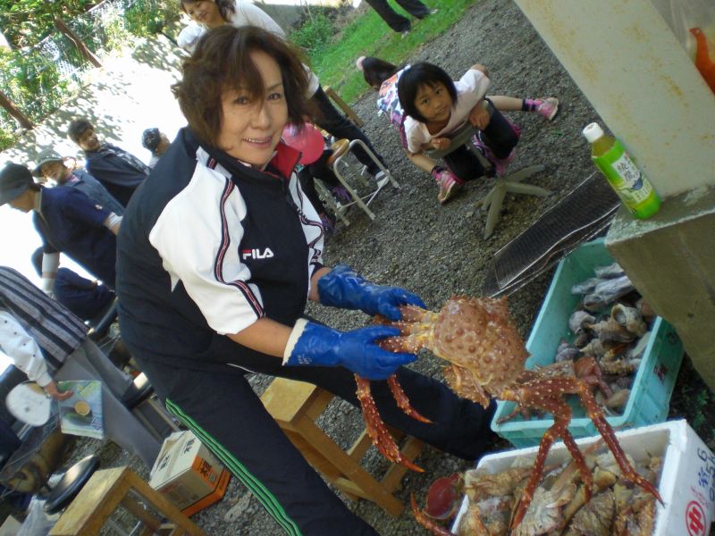 ちょっと分かりづらいかな^^; いよいよ秋→冬がやってきますね。 秋晴れだけど、かなり風が冷たい中、秋祭りに行って来ました。町内の各女性部の方々が中心となって開催しているお祭り。今年で三回目になるそうです。 お天気が良かったので、二匹も連れて。 たくさんの方に可愛がって頂きました(*^_^*) 会場では、お母さんたちが作ったホッケバーガーや、団子汁など、羅臼の食材を使った料理や、加工品が売られていたり、野点を楽しんだり、ビンゴ大会があったり… 子どもからお年寄りまで、たくさんの人たちが楽しんでいました。 加工品のブースでは、友人がお母様と一緒に商品を売っていました。 羅臼出身で現在は町外に住む彼女。 このお祭りで手伝いをしたのは初めてだったそうで、周りのお母さんたちや、スタッフを見てしきりに言っていたこと… 『いや~、やっぱり羅臼はいいわ』 女性部の方たちが、お互いに協力しあってお祭りを作り上げていること 女性たちだけでなく、役場の方や漁協、各商店など、みんなで羅臼を盛り上げようとする雰囲気が伝わるということ 羅臼を離れて、改めて羅臼の良さを感じる と、帰ってからもメールでその思いを伝えてくれました(^-^) まったく同感です。 寒い中、運営にあたった皆さん、本当にお疲れ様でした 一昨日土曜日は、ラージボール卓球の月例大会を行いました。 エントリー7名と、ちょっと寂しい一回目となりましたが、定期活動常連さんを中心に盛り上がりました。 優勝は、Yさん! 毎回、ほぼ休まず参加している方だけに、みんな納得といった結果でした(^-^)v 皆さんに楽しんで頂けるよう、さらに工夫していきたいと思います。