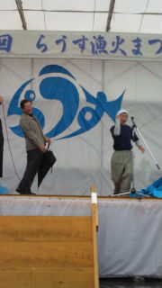 × [PR]上記の広告は3ヶ月以上新規記事投稿のないブログに表示されています。新しい記事を書く事で広告が消えます。 19日㈰ 漁火祭り2日目。 朝から大雨 ![]() 7:00過ぎに携帯が鳴る・・・ 悪天候の為、舟漕ぎレース中止とのこと・・・ ![]() せっかく練習したのに・・・ けれど、賞品をかけての大じゃんけん大会になったということで、予定通り港に集合しました。 5人の団体戦で、勝ち残り。 1人目が負け・・・ 最後は相手が3人、らいずチームは残り1人・・・ 誰もが敗退を覚悟していたのですが、ラストのMさん、やってくれました!! ![]() 3人を相手に連勝! 見事準決勝にコマを進めました。 ところが、準決勝。 1対1の大将戦までいったところで、私がやらかしました・・・ 悔しい・・・ 結局、敗者復活戦でMさんが再登場し、17チーム中、見事4位という成績をおさめたのでした ![]() 大量に頂いた賞品。 らいずの事業で活用させて頂きます。 それにしても、じゃんけん ![]() ![]() ![]() 結構盛り上がります ![]() 来年こそは舟漕ぎで入賞目指したいなぁ・・・ ![]() PR
