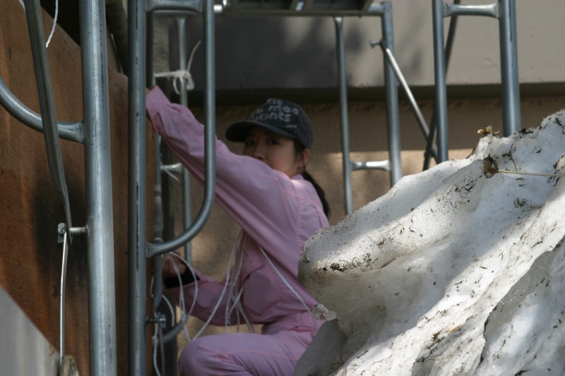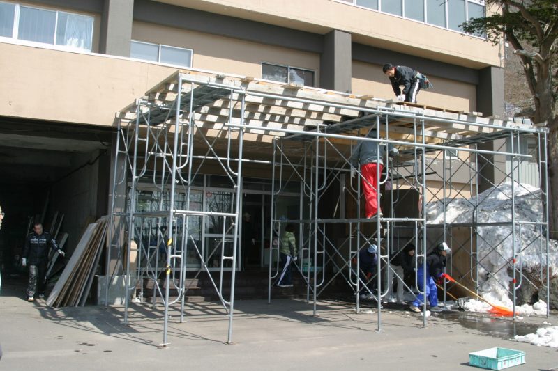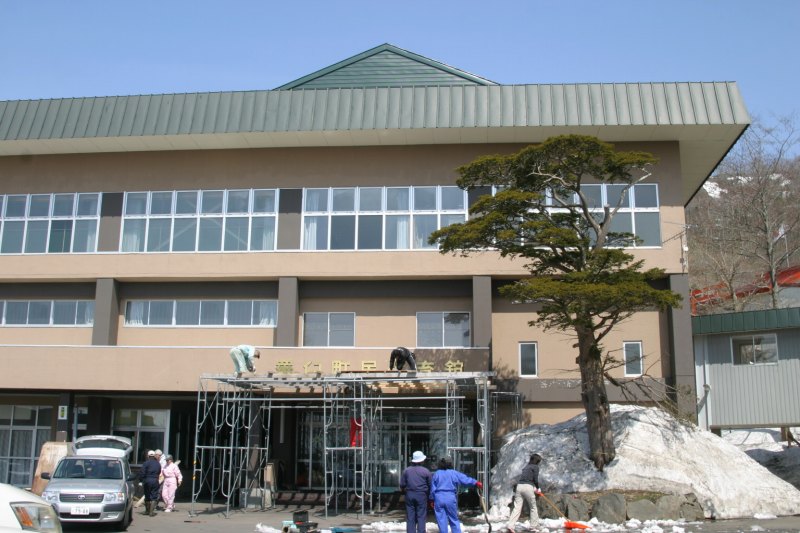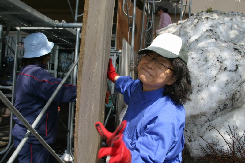ちょっと事情がございまして、HPの更新自体は滞っているのですが、 ブログはできるだろう! という声がそろそろ、というか、かなり前から聞こえてきておりまして・・・ すみません・・・ 頑張ります・・・ さて、4月から町民体育館の指定管理者となったらいずですが、 先日、運営委員さんと力を合わせ、体育館のやぐら撤去作業を行ないました! 例年、屋根からの落雪から利用者さんを守るため建てられている玄関前のやぐら。 これまでは、体育館・公民館の職員の方々が設置・撤去を行なっておりましたが、 ここは既に、らいずが管理しなければならないところ!ということで、 4月21日(日)、休日の方が多い中、運営委員さん達にご協力をおねがいしたところ、 なんと総勢13名の方が集まって下さいました。 ありがたい!! 女性陣も大活躍! 先輩の「つなぎ姿」に刺激され、私も事務所に眠らせていた ピンクのつなぎを初使用・・・ 新人ACM 紗季も頑張りました! いつもは、2時間近くかかっていたという撤去作業でしたが、 手際のよい運営委員さん達のご協力のおかげで、1時間15分でフィニッシュ!! 本当にありがとうございました! 玄関前がスッキリ明るくなりましたよ! と、やぐらを撤去した途端、この日は午後から雪・・・ そして、GWだというのに、羅臼はまだ雪・・・ 春はいつやってくるのやら・・・ HPがうまく更新できない替わりと言ってはなんですが、 ただ今、ACMにFACEBOOKページを作成してもらっています。 もちろん、今後HPも修正していきますので、 今しばらく、お待ちくださいませ・・・