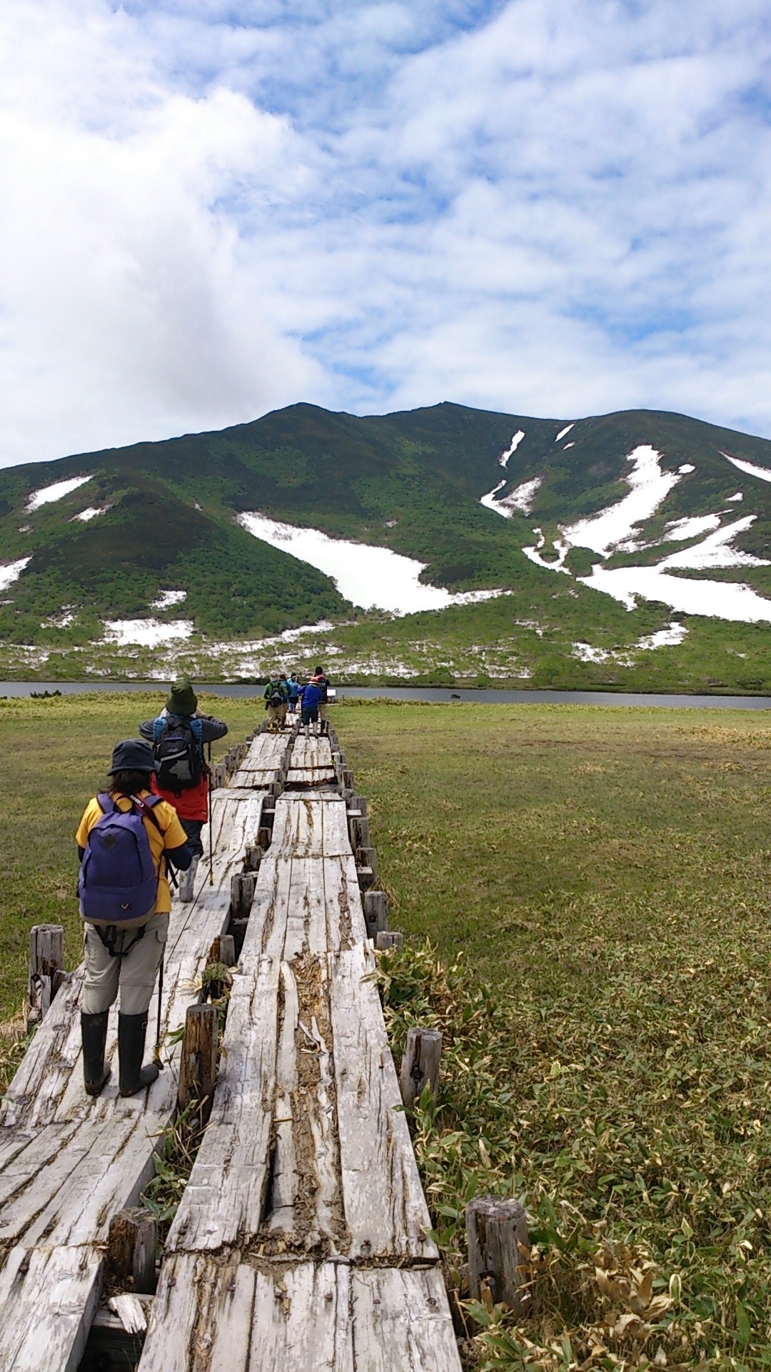 はい。この前にも書いてますので、よろしければご覧ください。 さて、お次は22日(土)に行った「羅臼湖トレッキング」。 当初、5月の連休に予定してたのですが、今年は知床峠開通が遅く、今回ようやく開催することができました。 1ヶ月以上待ち望んだ甲斐あって、当日は最高のトレッキング日和! 暑すぎず、寒くなく、景色も最高! まだまだ、雪が残る道は、スノーシューが無くてもスムーズに歩けました。 今年からはルートが変更になり、これまでの入口より少し峠よりからスタートしました。 今回は、山岳会の佐々木さんが協力者として参加して下さり、今後のルートについても 途中色々と説明して下さいました。 羅臼岳もくっきり。 今の時期は、雪道もあれば、泥だらけの道もあり、木道もあり、 飽きずに楽しい1時間40分のトレッキングを楽しめることができます。 到着後は1時間程のーーんびり。 日向ぼっこを楽しんだり、カエル探しをしたり・・・ ゆったりとした時間をそれぞれ楽しみました。 次回の羅臼湖トレッキングは、7月28日(日)の予定。 今回とはまた違う景色が見られます。 詳細は、7月10日発行の広報ちらしでご確認ください! 7月23日(日)には、パークゴルフ交流会も開催。 こちらも良いお天気。 掲示板に運営委員さん達が書き込んでくれていますので、詳しくはそちらをご覧ください。