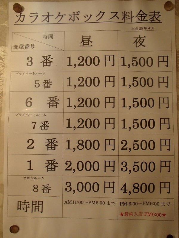 はい。この前に2つ新しい記事があるのです。 そちらもご覧くださいね。 さてさて、会員さんに嬉しいお知らせです! 先日、5年ぶりに再開した、「カラオケスタジオ2001」さんが、らいずの協賛店に加わって下さいました!! 内装もリニューアル。 機械も最新のものが導入されているとのこと。 広いお部屋だと、30~40人は楽に入ることができます。 らいずの会員証(今年のもの)を提示すれば、使用料が1割引きになります! これは、お部屋の代金なので、何人利用してもこのお値段。 会員証を持っている人が一人でもいればOKとのことです。 (ちなみに、写真のお部屋は1番と8番のお部屋。どちらも20人以上は入れます。) 更に! 2001さんの上にある、「めし処 伯亭」さんでも、会員証を提示すれば 500円から700円のお食事すべてが50円引き! これまたお得! 事前に連絡を入れれば、待たずに食べる事もできるそうです! 営業時間は10時頃~夕方5時頃まで。 午前中カラオケを楽しんで、お昼にお食事をして帰るっていう楽しみ方もいいですよね。 らいずでも、何か企画して活用させて頂きたいと思っています。 今日から早速利用できますので、会員の皆さん、是非是非足を運んで下さいね。 「カラオケスタジオ2001」「めし処 伯亭」 緑町 87-2189 ただ今、HPリニューアル作業中! 皆様には、ご迷惑をおかけして大変申し訳ありません・・・ 今週中には新しいHPがOPENする予定です。 ブログもリニューアル。フェイスブックにも登場! もう少々、お待ちくださいませ・・・ PR